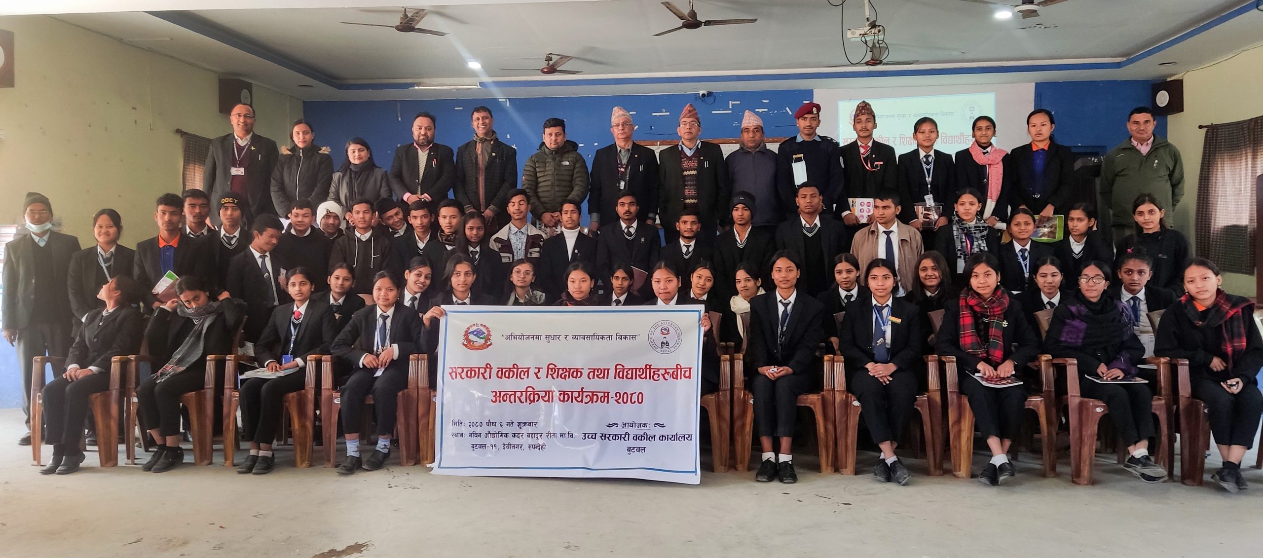 उच्च सरकारी वकिल कार्यालय बुटवलले शुक्रर शिक्षक विद्यार्थीहरुसँग अन्तरकृया कार्यक्रम सम्पन्न गरेको छ ।सरकारी वकिल कार्यालयको काम कारबाही, शिक्षक विद्यार्थीहरुसँगको सहकार्य, कानुनी ज्ञान लगायतका विषयमा सरकारी वकिल कार्यालयले अन्तरकृया गरेको हो । समुदायमा सरकारी वकिल कार्यक्रम अन्तर्गत अन्तरकृया गरिएको हो ।