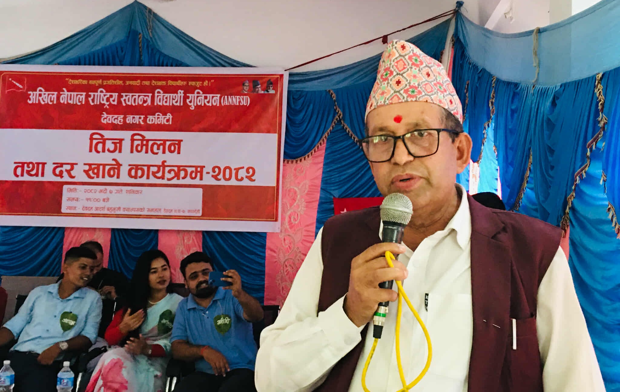 देवदह // अनेरास्ववियु देवदह नगर कमिटीले तीज मिलन तथा दर खाने कार्यक्रम सम्पन्न गरेको छ । कार्यक्रम अनेरास्ववियु देवदह नगर कमिटीका अध्यक्ष अश्विन न्यौपानेको अध्यक्षता र नेकपा एमाले लुम्बिनी प्रदेश कमिटी सदस्य तथा देवदह नगरपालिकाका नगर प्रमुख ध्रुव प्रसाद खरेलको प्रमुख आतिथ्यतामा सम्पन्न भएको थियो ।